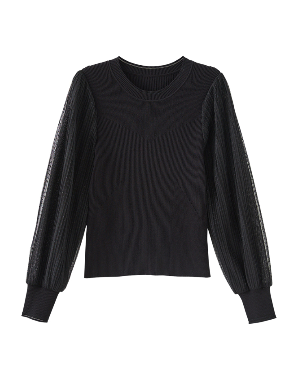 *袖身特殊點點網紗氣質甜美 *合身版型修飾線條 *可搭配網紗長裙,氣質優雅 *羅紋圓領、袖口加強彈性及耐用