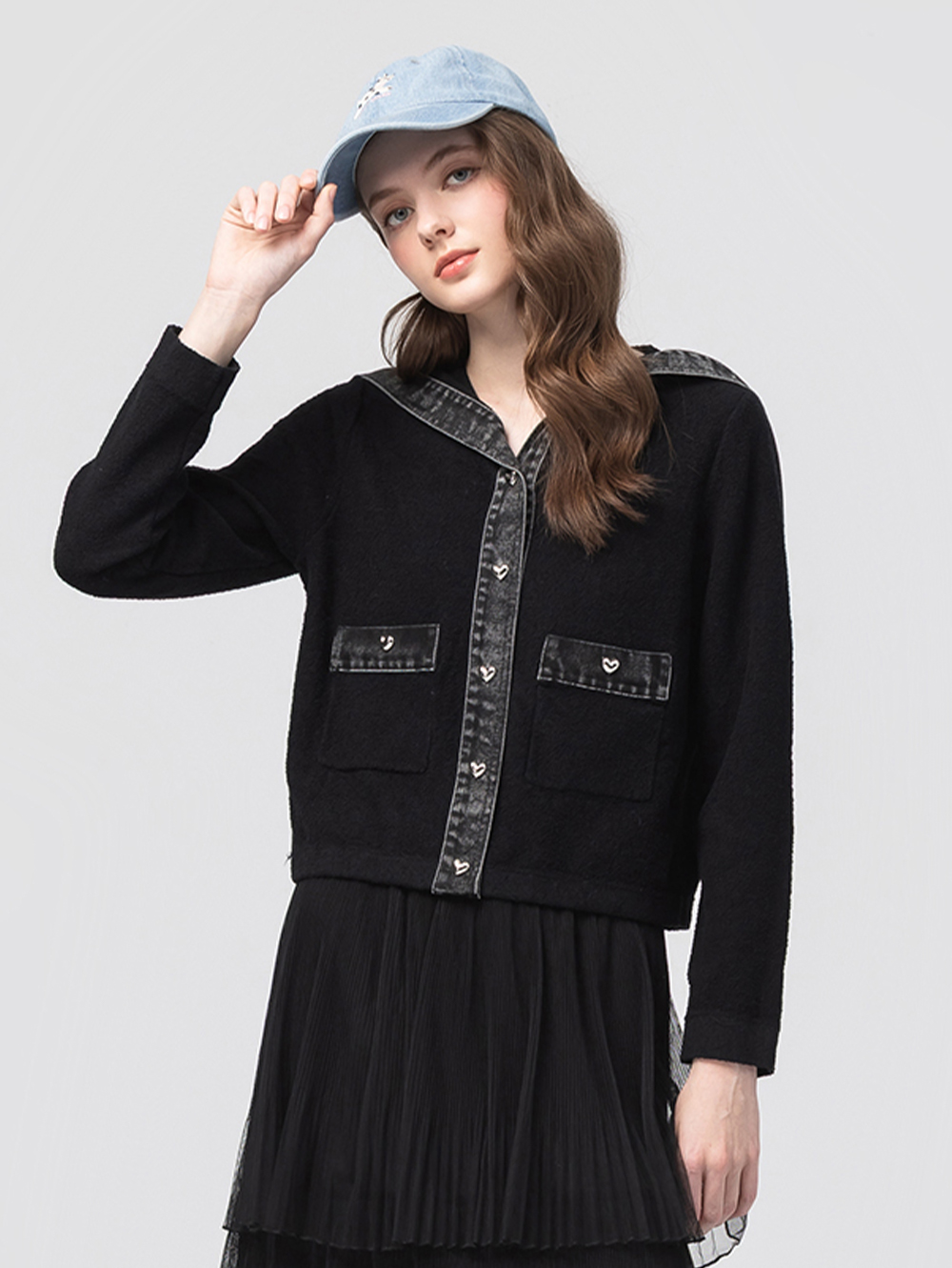 *牛仔拼接針織設計 *水手領造型,寬鬆版型 *可單穿也可當外套搭配穿搭 *面料柔軟舒適