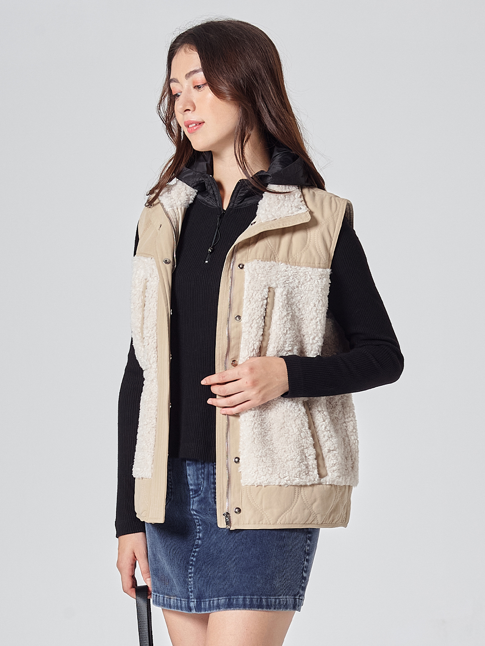 -優雅修身版型 -內外搭兩穿 -異材質拼接