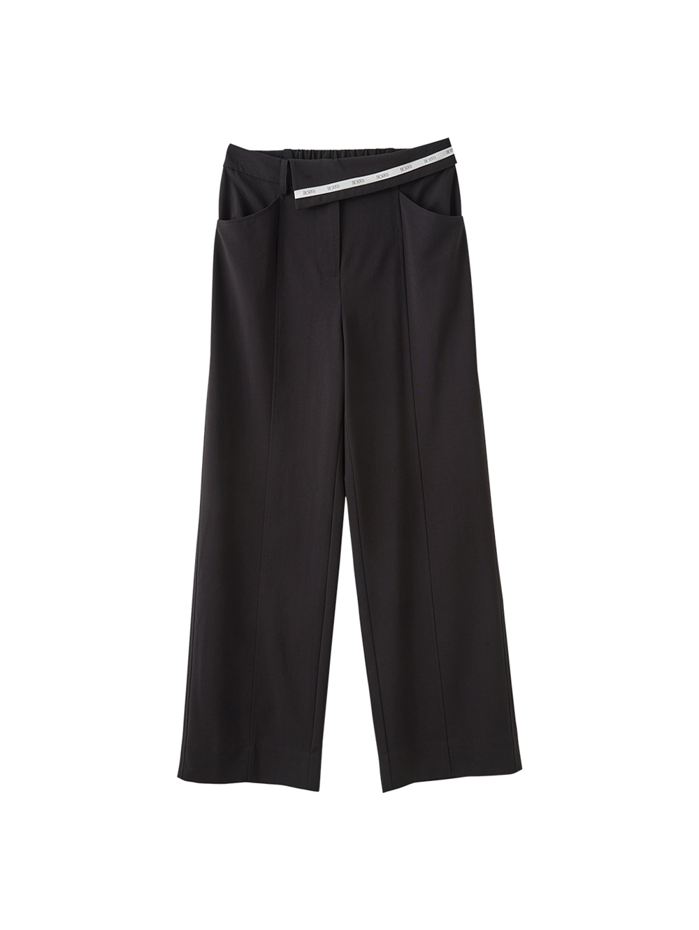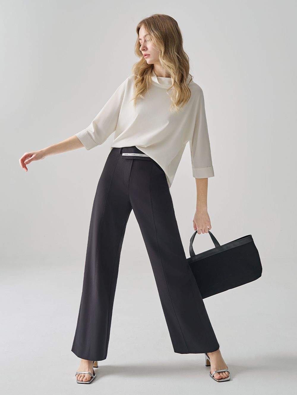 顯瘦俐落的直筒剪裁, 搭配造型層次腰頭設計, 低調中帶出時髦細節。