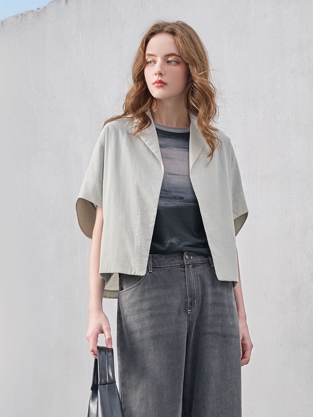 俐落翻領設計結合寬袖剪裁, 穿上瞬間拉出份量感, 短版長度讓視覺比例更修長。