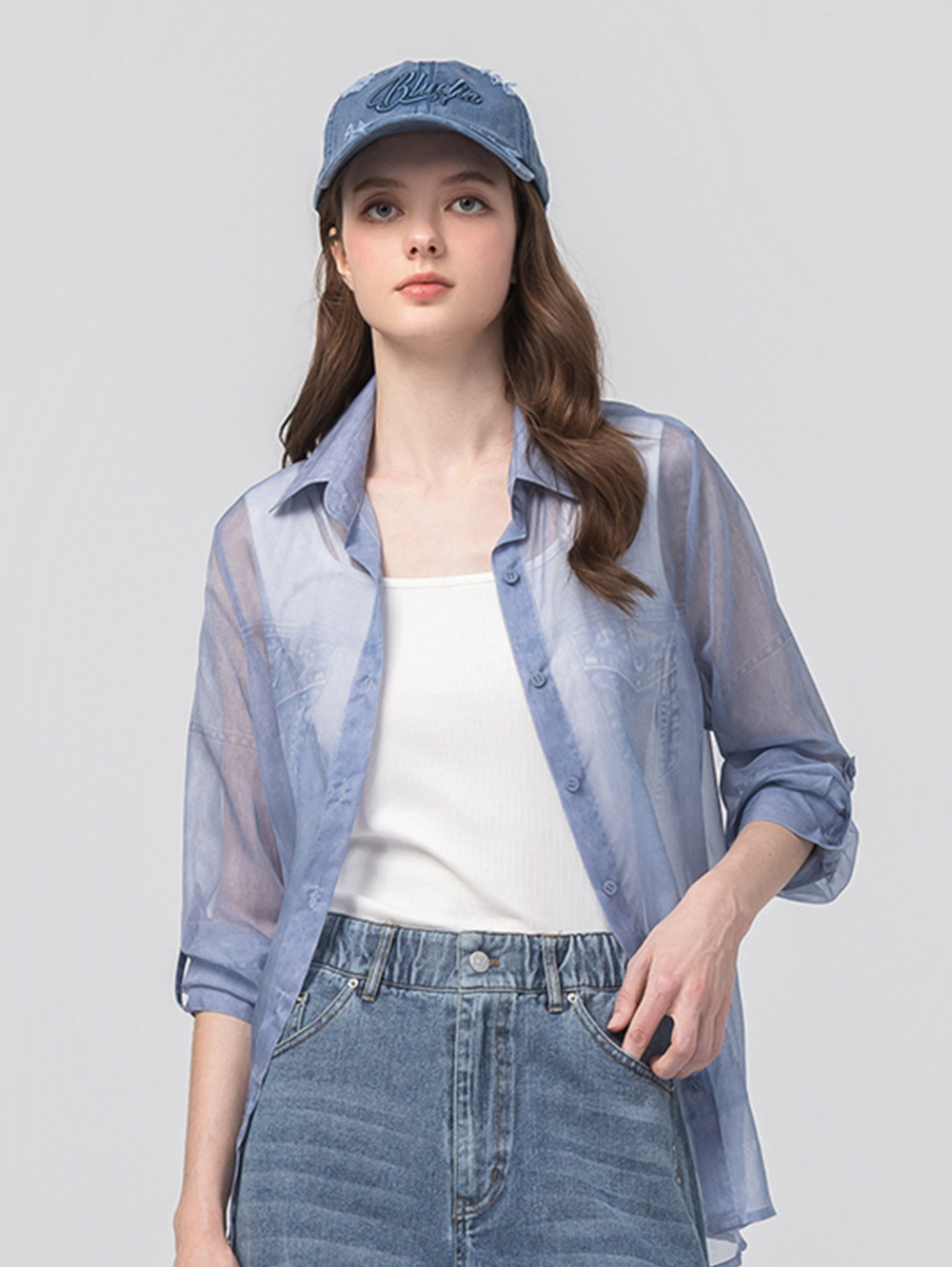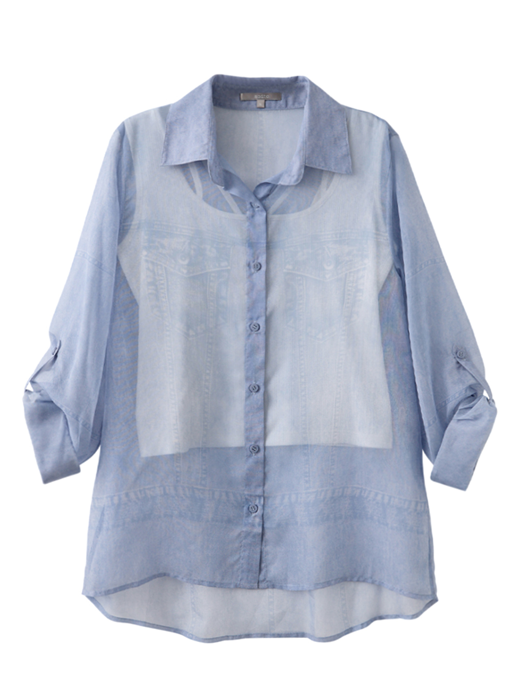 *復古單寧紋理數位印花設計 *寬鬆版型,不挑身材 *柔軟薄透輕盈布料 *兩件式附內搭背心