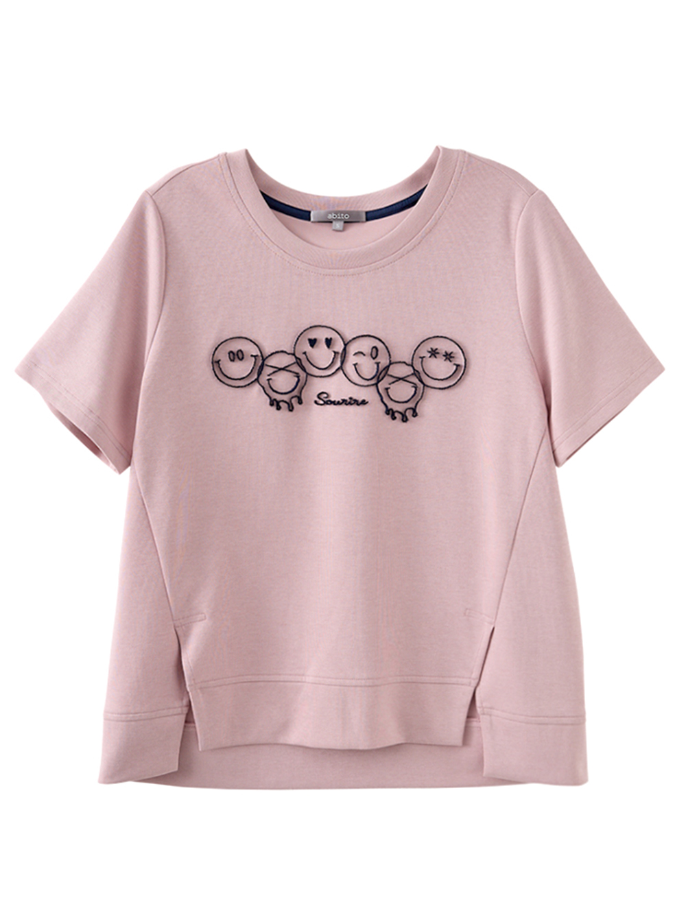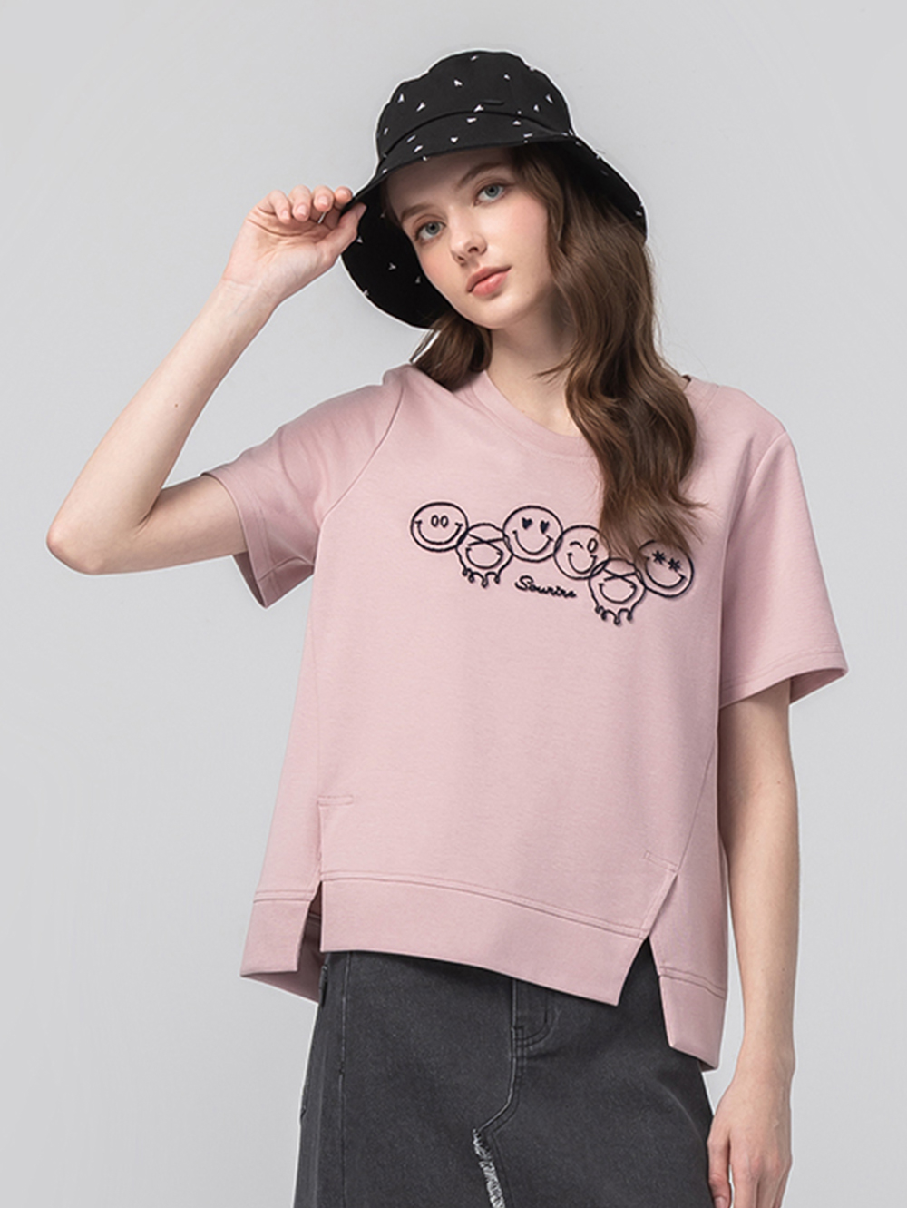 *圓領設計修飾頸部線條 *特殊笑臉牙刷繡工藝 *寬鬆休閒版型 *適合日常休閒穿搭