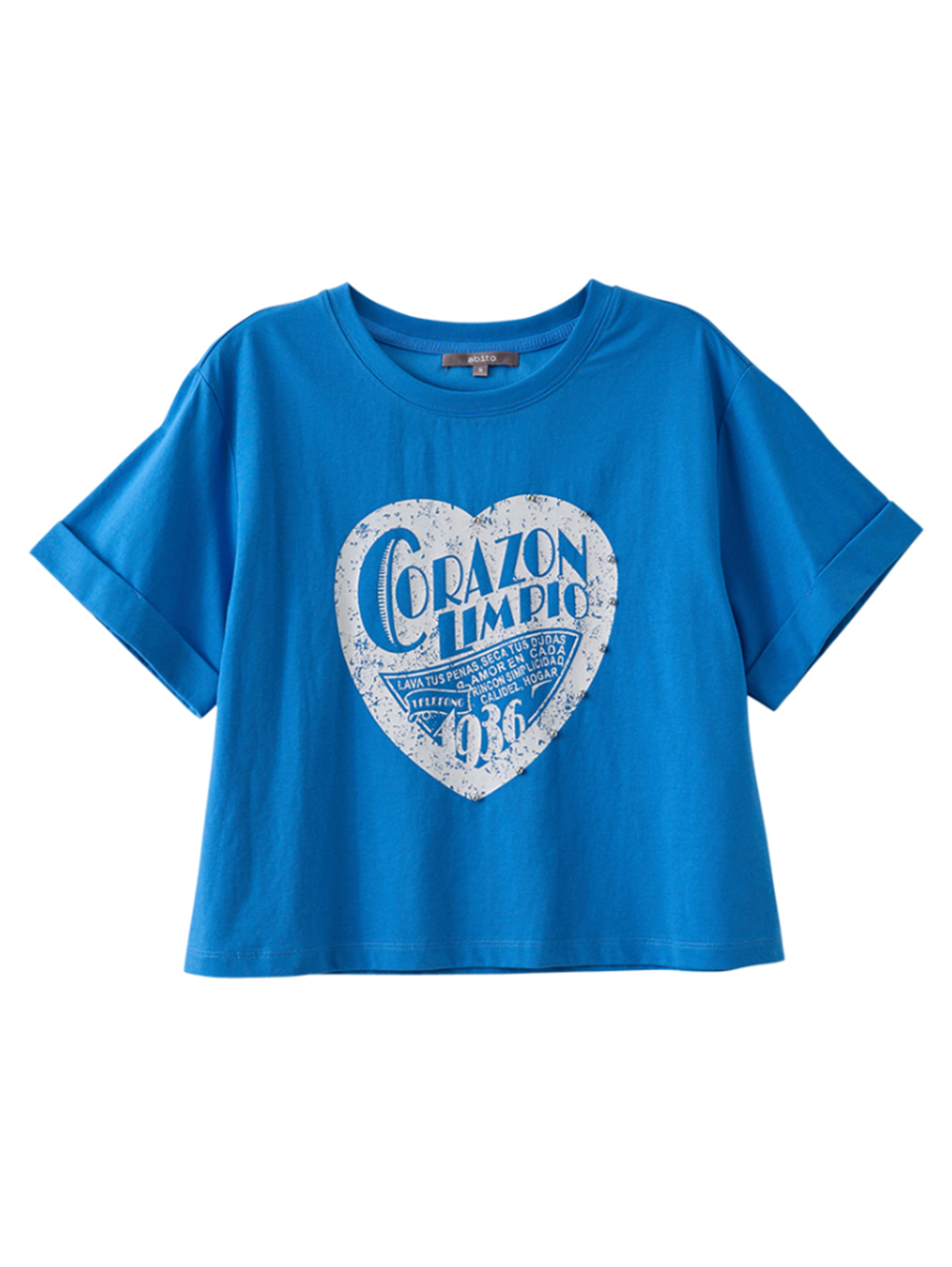 *噴漆感字母愛心膠印造型 *立體金屬圓珠增添細節 *短版剪裁版型,修飾線條比例 *柔軟棉質面料,舒適親膚