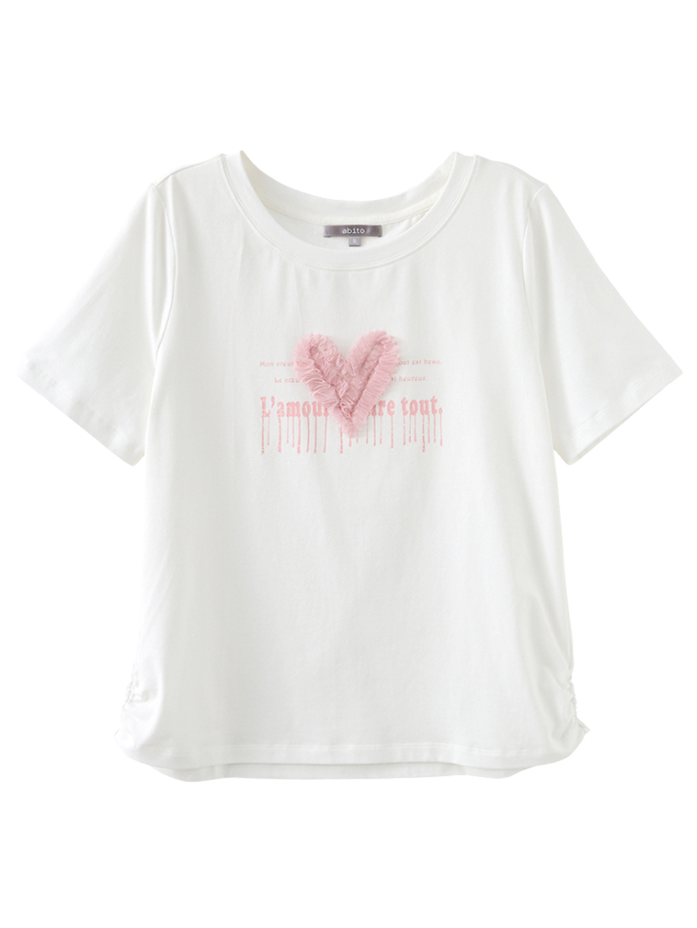 *胸前立體愛心裝飾設計 *版型修飾線條不貼身 *適合日常休閒穿搭 *棉質面料柔軟親膚