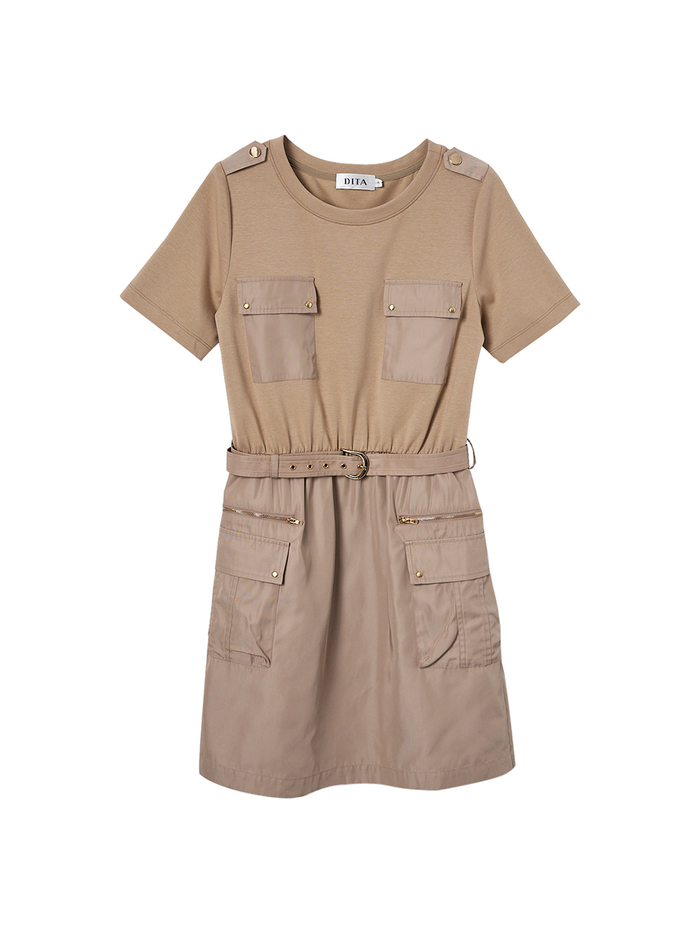 異素材的搭配是每季標配的元素,配合今年超流行的大口袋細節設計,A字的短線條讓整體的俏麗感加分!