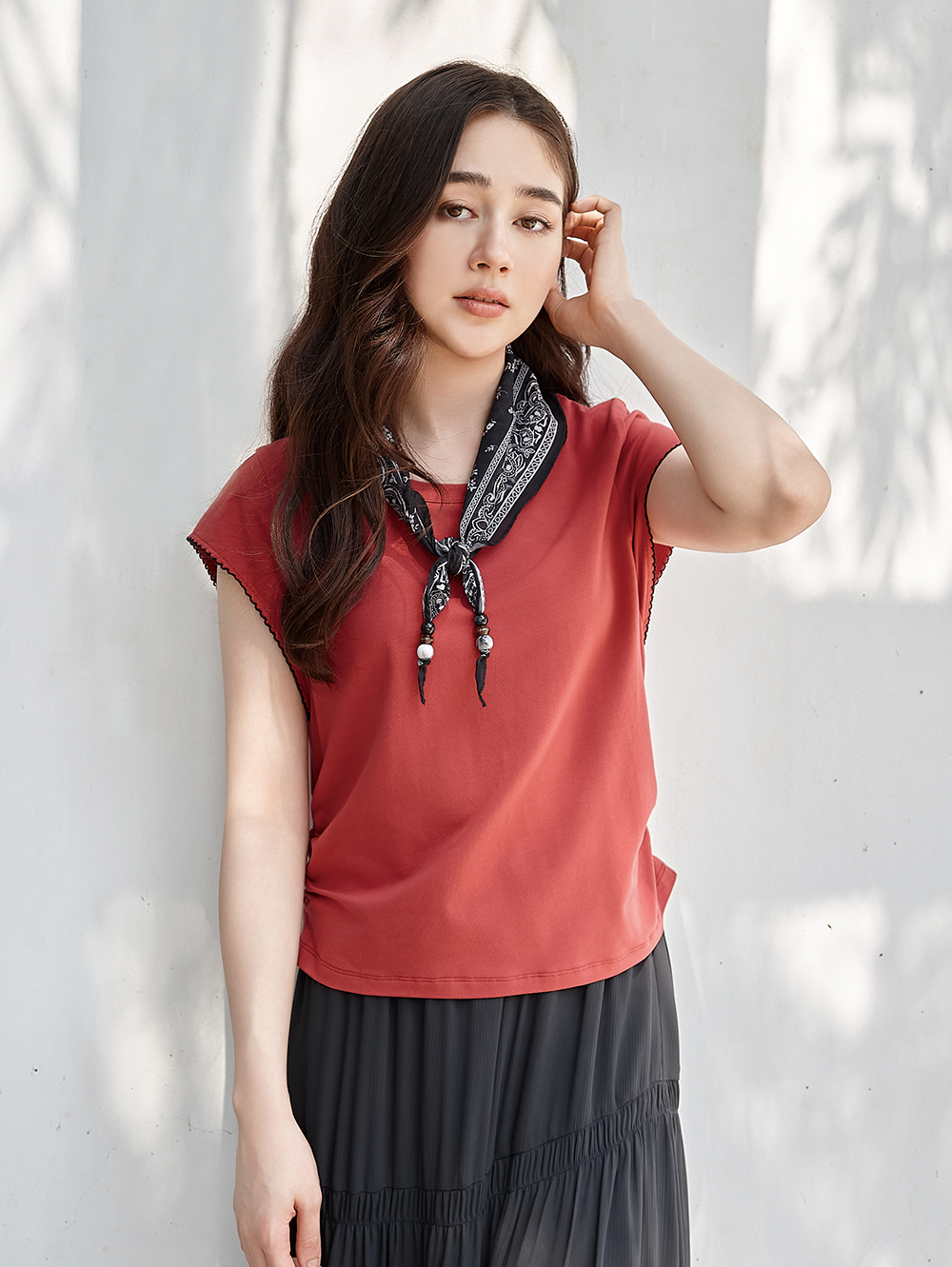 修身版型 附領巾增添細節 舒適柔軟布底