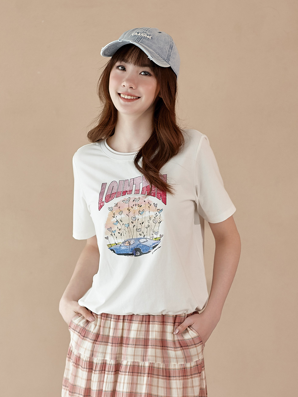 基礎百搭身型 下擺抽皺設計 多元素印花設計增添趣味