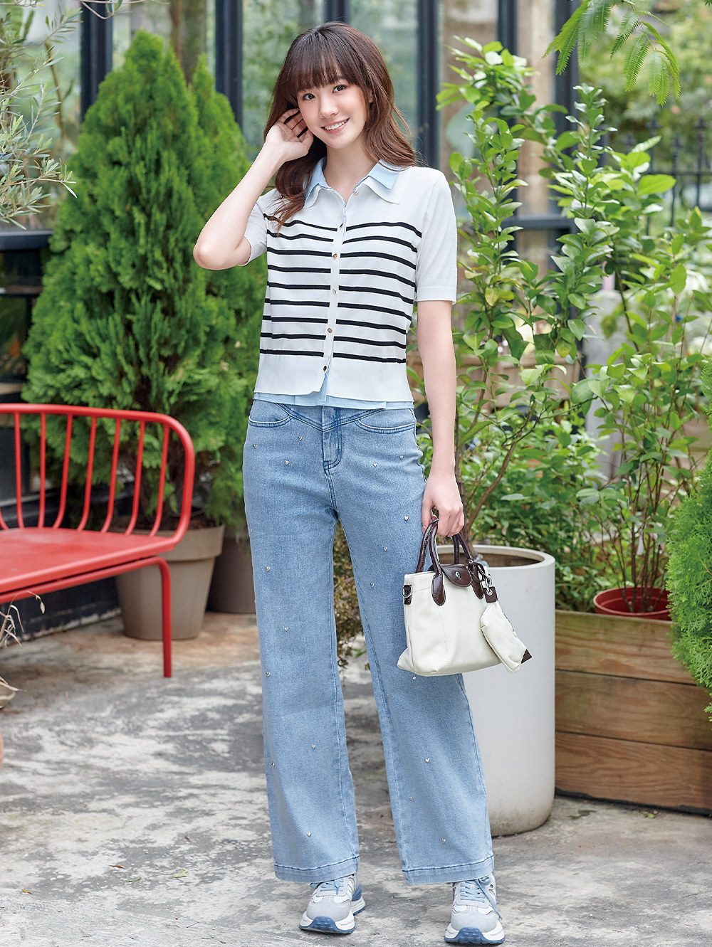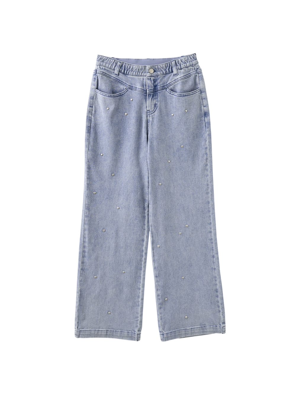 -基礎百搭身形 -散落愛心造型釘珠 -特殊水洗增添個性